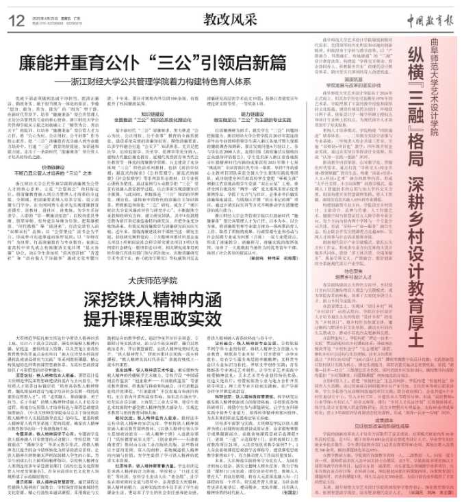 米乐(中国)艺术设计学院敏锐洞察时代需求,凭借深厚的历史积淀和卓越的创新精神,积极投身于学科与教学改革,以“产教融合、科教融汇、校地融通”的“三融”设计教育改革,构建起“学科交叉驱动、校企协同育人、科教服务共生”的现代设计教育体系,踏出坚实且深刻的育人奋进轨迹。